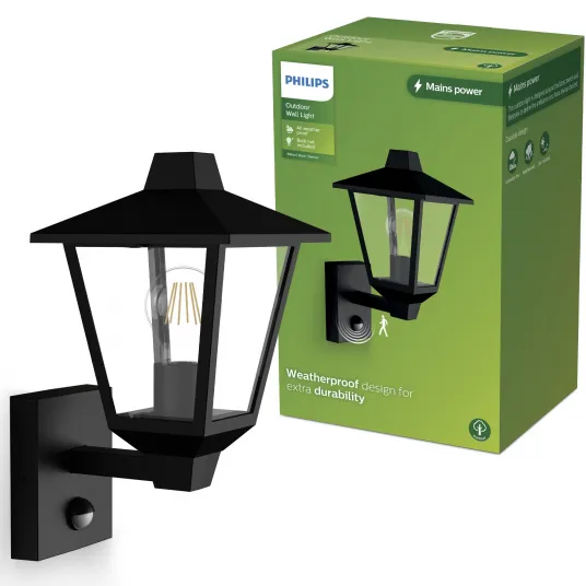 Lampa de perete Philips Kinno, cu senzor de miscare, E27, Max. 25W, IP44, 32x17x21 cm, Aluminiu, Negru, becul nu este inclusLampa de perete Philips Kinno, cu senzor de miscare, E27, Max. 25W, IP44, 32x17x21 cm, Aluminiu, Negru, becul nu este inclus224237403224237403
