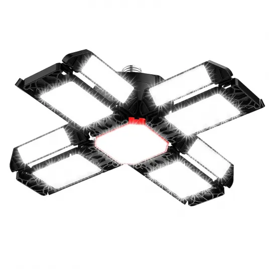 Lampa LED cu 4 brate mobile ajustabile, YWX, Bec Iluminare pentru interior Garaj, Depozit, Atelier, cu 192 LED-uri, flux luminos 6300lm, lumina alba rece, clasa energetica F
