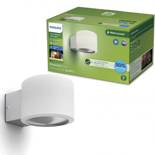 Lampa LED de perete pentru exterior Philips Otis, 4.3W, 800 lm, lumina alba calda (2700K), IP44, 11x14x19 cm, Inox, Clasa energetica B