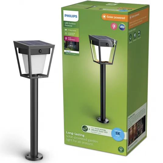 Lampa solara pentru gradina Philips Nissa, cu senzor miscare/lumina, 1.8W, 250/25 lm, lumina alba (3000K), IP44, 69 cm, Negru