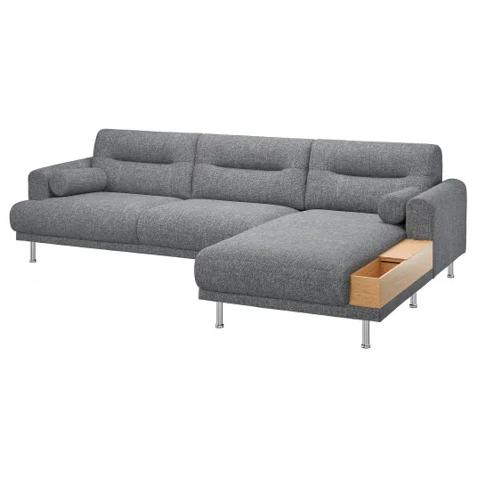 Canapea LANGARYD are un design cu 3 locuri, cu sezlong pe partea dreapta, permitandu-va sa va intindeti picioarele si sa va relaxati. Sezlongul se poate detasa cu usurinta de pe canapea si poate fi amplasat pe ambele parti in functie de preferintele si cerintele de spatiu de locuit.