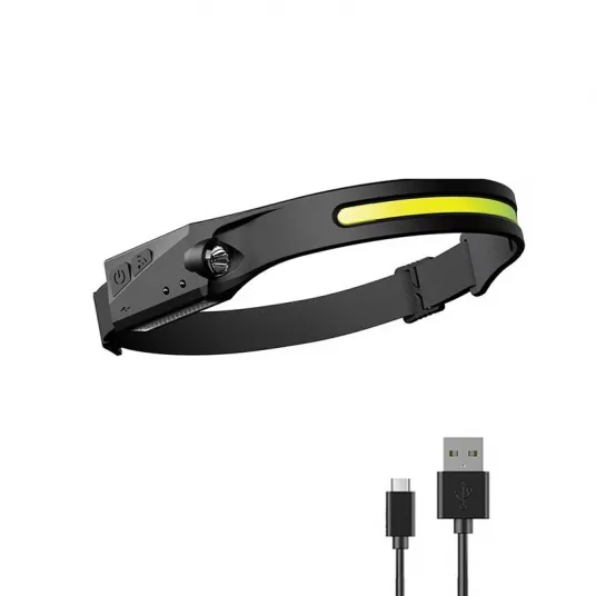 Lanterna de cap cu acumulator, frontala cu unghi larg de iluminare, senzor miscare, 5 moduri lumina, impermeabil, pentru vanatoare, pescuit, camping, santier, Negru