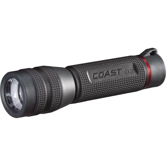 Lanterna LED COAST® GX20 cu focus ajustabil, 1200 lumeni, 4 moduri lumina, rezistenta la apa, praf si impact, 4 baterii AAA incluse, negru