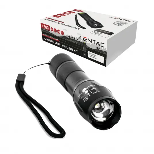 Lanterna LED Entac Flashlight Zoom, suport bicicleta, USB, 5W, 500lm, 5 moduri de iluminare, IP65, 18650/3xAAA nu sunt incluse, Aluminiu