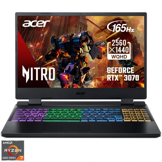 Laptop Gaming Acer Nitro 5 AN515-46 cu procesor AMD Ryzen™ 7 6800H pana la 4.70 GHz, 15.6" QHD, IPS, 165Hz, 32GB, 1TB SSD, NVIDIA® GeForce RTX™ 3070 8GB GDDR6, No OS, Black