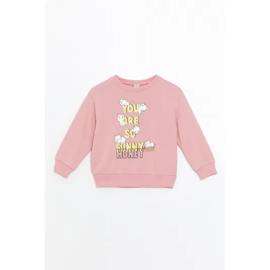 LC WAIKIKI, Bluza de trening cu decolteu la baza gatului si imprimeu, Alb, Galben, Roz pal, 116-122 CM