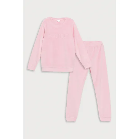 LC WAIKIKI, Pijama lunga cu detaliu text frontal, Roz, 104-110 CM