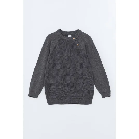 LC WAIKIKI, Pulover cu decolteu la baza gatului si maneci raglan, Gri inchis melange, 74-80 CM