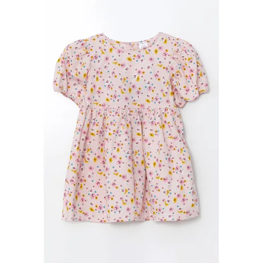 LC WAIKIKI, Rochie din bumbac cu model floral si maneci bufante, Albastru pastel, Lila, Roz prafuit, 110-116 CM