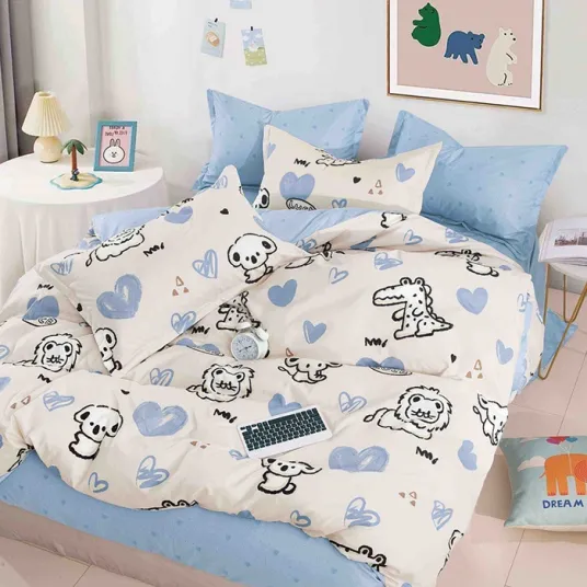 Lenjerie de pat pentru 1 persoana, cu 4 piese, brand Dormy, confectionata din finet.