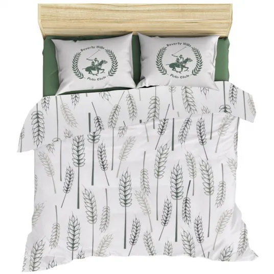 Lenjerie de pat Beverly Hills Polo Club, 2 persoane, 100% bumbac ranforce, cearceaf pilota 200x220, cearceaf pat 240x260, fata de perna 50x70cm, model spic