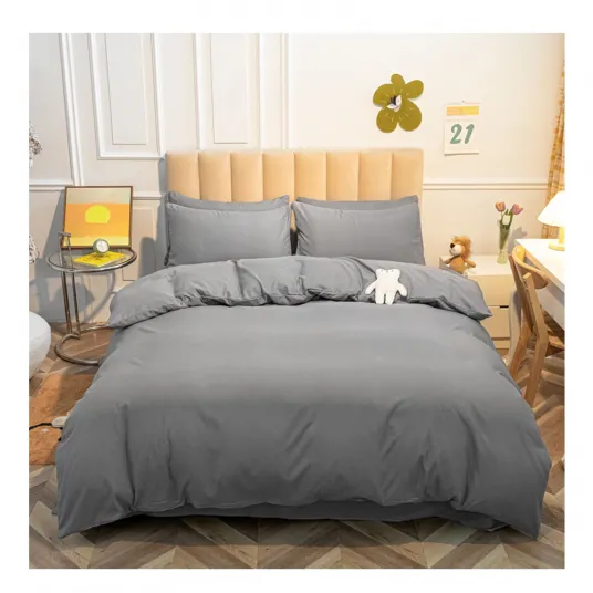 Lenjerie de pat dublu 2 persoane, SINBINTA, 4 piese, Cearsaf pilota 180x220 cm, Cearsaf pat 230x230 cm, Doua fete de perna 48x74 cm, Prietenos cu pielea si moale, Absorbant de umiditate si respirabil, Design simplu, Bumbac, Gri
