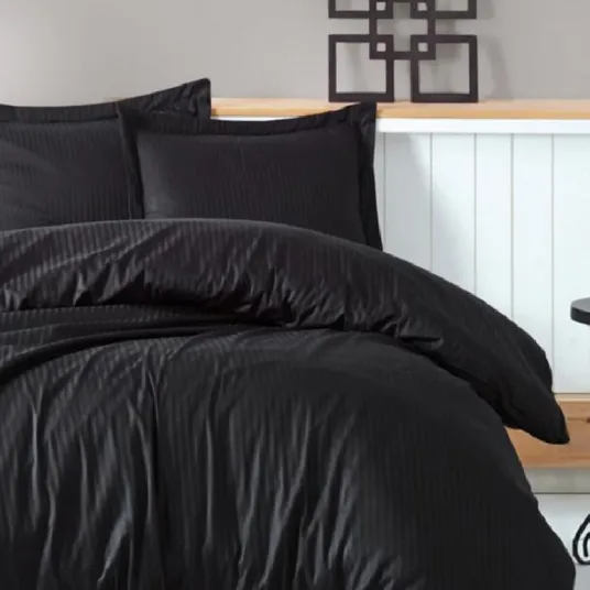 Lenjerie Family Elegant Stripe Negru, cu 2 cearsafuri de Pilota (Satin Deluxe)