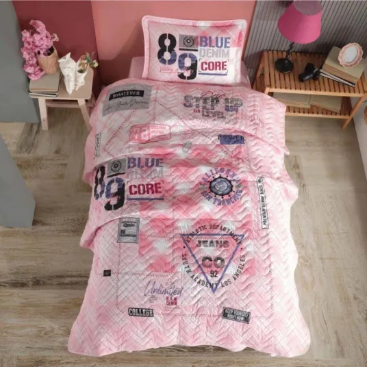 Lenjerie si Cuvertura 1 Persoana, pentru copii Denim V1 Roz (Bumbac 100%)