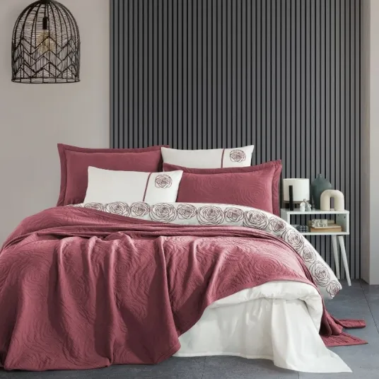 Lenjerie si Cuvertura, 7 Piese, Novella Dry Rose (Bumbac 100%)