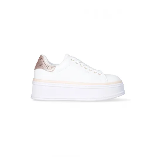 Liu Jo, Pantofi sport din piele cu platforma si strasuri, Alb, Roz, 37Liu Jo, Pantofi sport din piele cu platforma si strasuri, Alb, Roz, 37223709028223709028