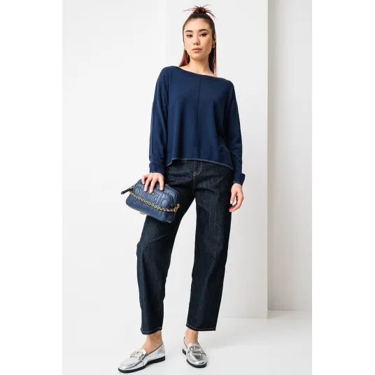 Liu Jo, Pulover tricotat fin cu maneci cazute, Bleumarin, S