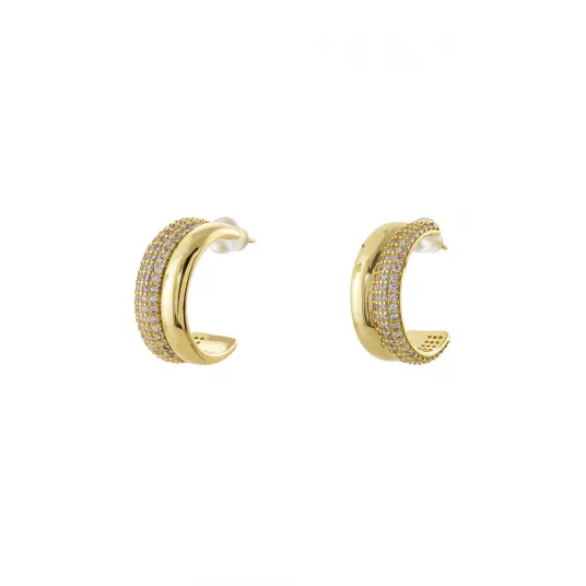 Loisir by Oxette, Cercei placati cu aur de 18K si zirconia, Auriu