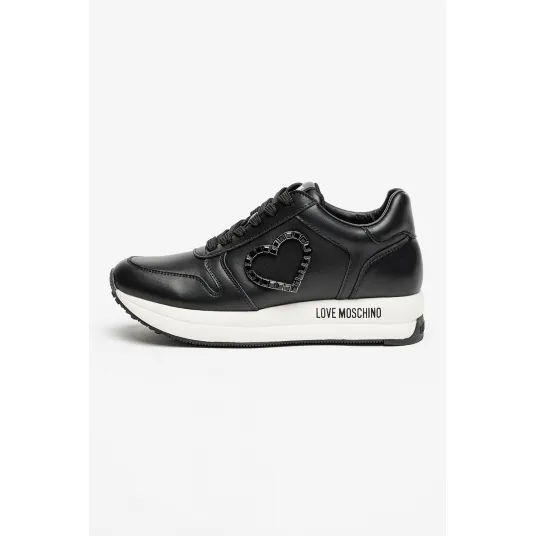 Love Moschino, Pantofi sport low-cut de piele ecologica, Negru, 36