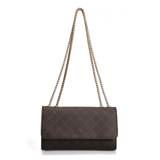 Lucky Bees, Geanta crossbody de piele ecologica si imprimeu logo cu bareta de lant, BrunaLucky Bees, Geanta crossbody de piele ecologica si imprimeu logo cu bareta de lant, Bruna222192545222192545
