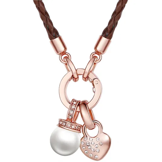 Lulu & Jane, Colier de piele cu pandantive de aur de 14K filat, Maro