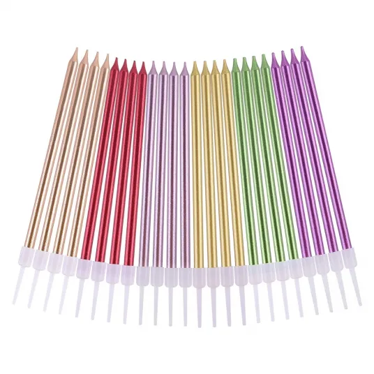 Lumanare de ziua de nastere, SINBINTA, 24 bucati, Baza detasabila, Fara picurare de ceara, Rezistent la temperaturi inalte, Usor de utilizat, Non-toxic si inofensiv, Pentru petreceri aniversare, nunti, baby showers, 11.5cm, Multicolor