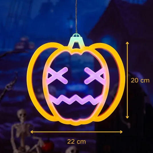 Lumina decorativa de Halloween, semn neon dovleac, 20x22cm, set cu alimentare USB sau bateriiLumina decorativa de Halloween, semn neon dovleac, 20x22cm, set cu alimentare USB sau baterii223192713223192713