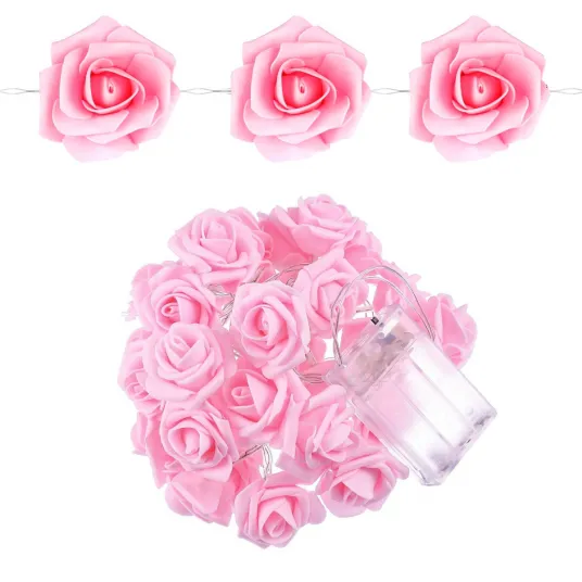 Lumini LED decorative de Ziua Indragostitilor, Kaxyrooz, 3 Metri, 20 Leduri, Forma de floare trandafir, Roz