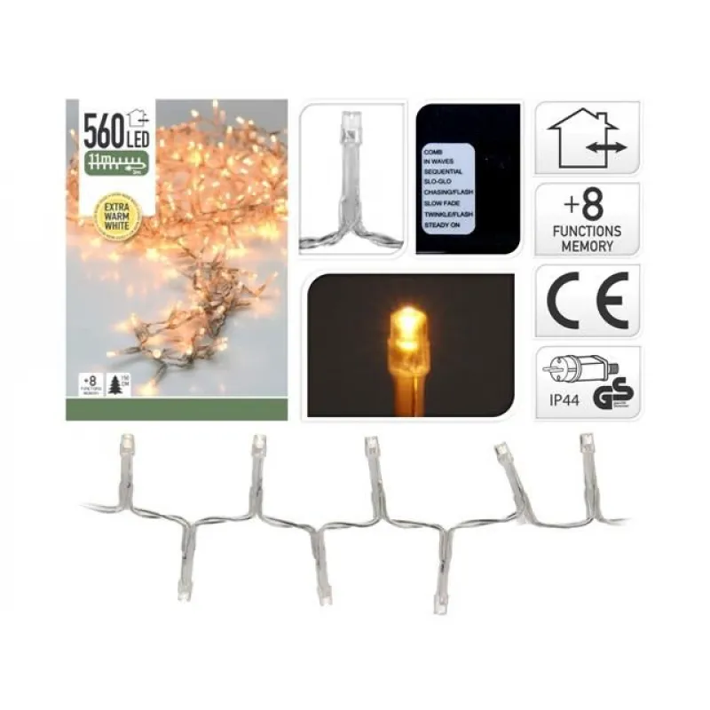 Luminite de Craciun "Ramura" 560LED extra alb-cald, 11m, 8reg, cablu transp