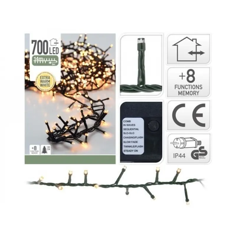 Luminite de Craciun "Ramura" 700LED extra alb-cald, 14m, 8regim