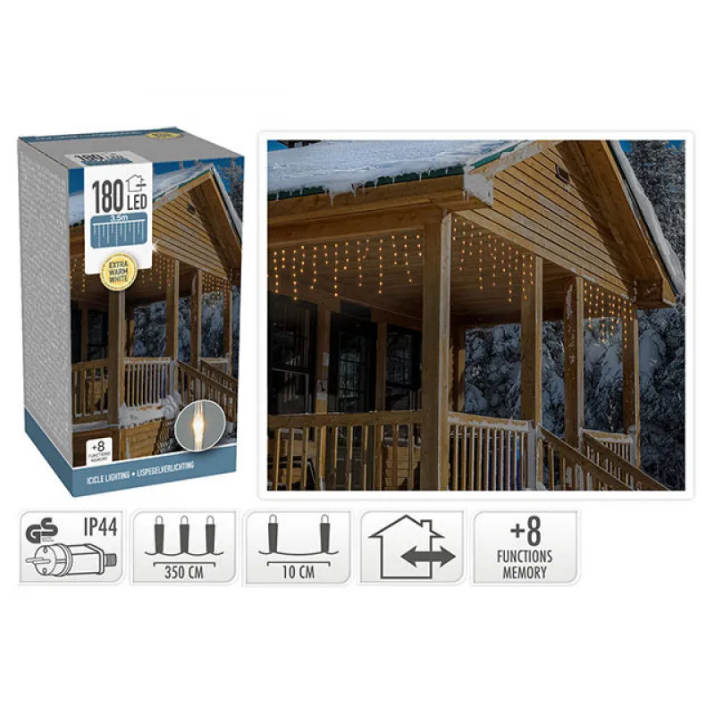 Adu magia Craciunului in casa ta cu Luminite de Craciun Turturi 180LED extra alb-cald 35m. Aceste lumini rafinate de Craciun sunt concepute pentru a adauga o nota de eleganta si caldura decoratiunilor tale festive. Cu lungimea lor foarte mare de 35 m si cele 8 moduri de iluminare versatile, aceste lumini vor crea un afisaj vizual uimitor care va va captiva oaspetii si vecinii.