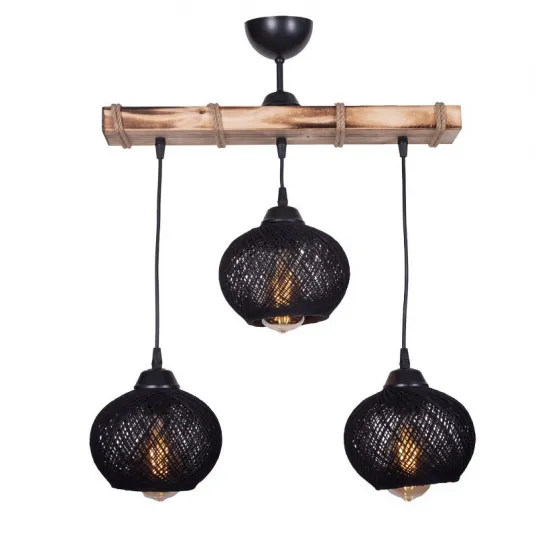 Lustra cu 3 lumini Fiona I E27 negru-natural 50x20x63cm