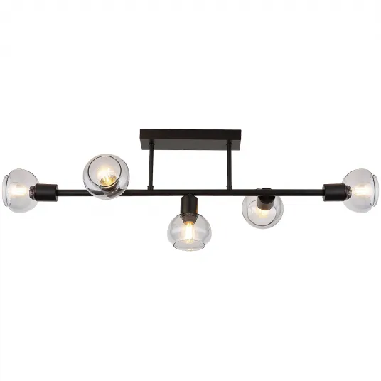 Lustra Rabalux Sullivan 3296, E14, 5x40W, IP20, geam fumuriu, metal, 83cm, Negru