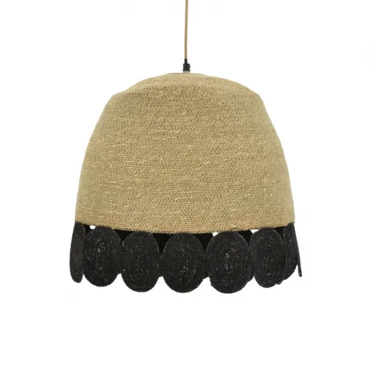 Lustra este realizata dintr-o combinatie de iuta naturala si otel moale, oferind nu doar un aspect estetic placut, ci si durabilitate. Iuta aduce un aer rustic si cald, in timp ce otelul asigura stabilitate si rezistenta.