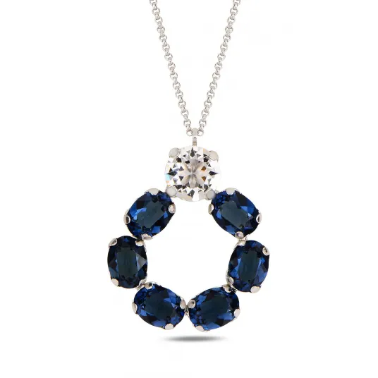 Maestro Italy, Set de colier si cercei cu cristale, Albastru inchis, Argintiu
