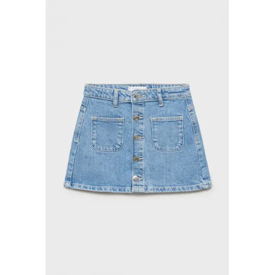 Mango, Fusta din denim cu buzunare laterale, Albastru, 146 CM
