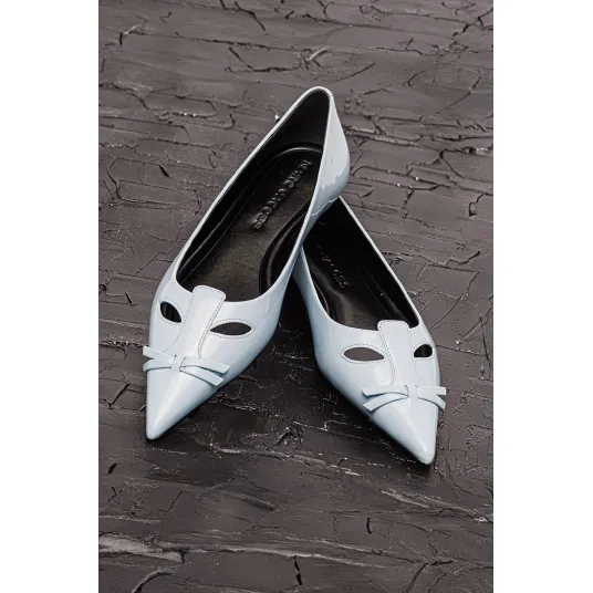 Marc Jacobs, Balerini din piele cu varf ascutit si decupaje The Kat, Albastru glaciar, 37