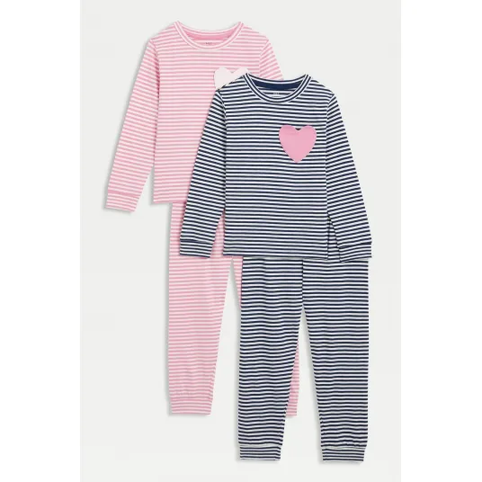 Marks & Spencer, Set de pijamale cu dungi - 2 perechi, Roz, Bleumarin, 76-83 CM