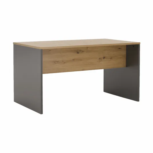 Masa de birou RIOMA NEW TYP 11 Culoare: grafit stejar artizanal Material: DTD laminat Dimensiuni (LxGxI): 140x80x76 cm Grosimea materialului: 16 22 mm Se livreaza fara container, containerul poate fi achizitionat separat din oferta noastra Se livreaza demontata
