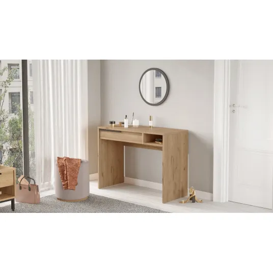 Masa noastra de machiaj este proiectata cu o culoare frumoasa de nuc, adaugand o nota de eleganta oricarei incaperi. Tonurile bogate si calde ale nucului completeaza o varietate de stiluri de decor, ceea ce o face o alegere versatila pentru orice spatiu.