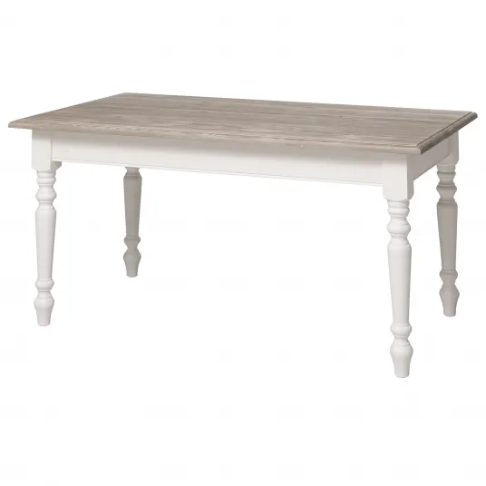 Masa de sufragerie cu picioare strunjite 160x90cm, culoare blat gri P067, culoare picioare alb P004, dublu color, 100% lemn masiv