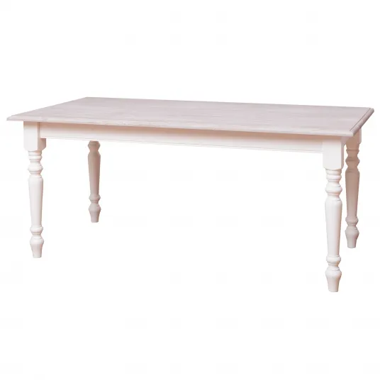 Masa de sufragerie Szel-Mob cu picioare strunjite 160x90cm, blat stejar, culoare top gri, culoare corp alb murdar, dublu color, 100% lemn masiv