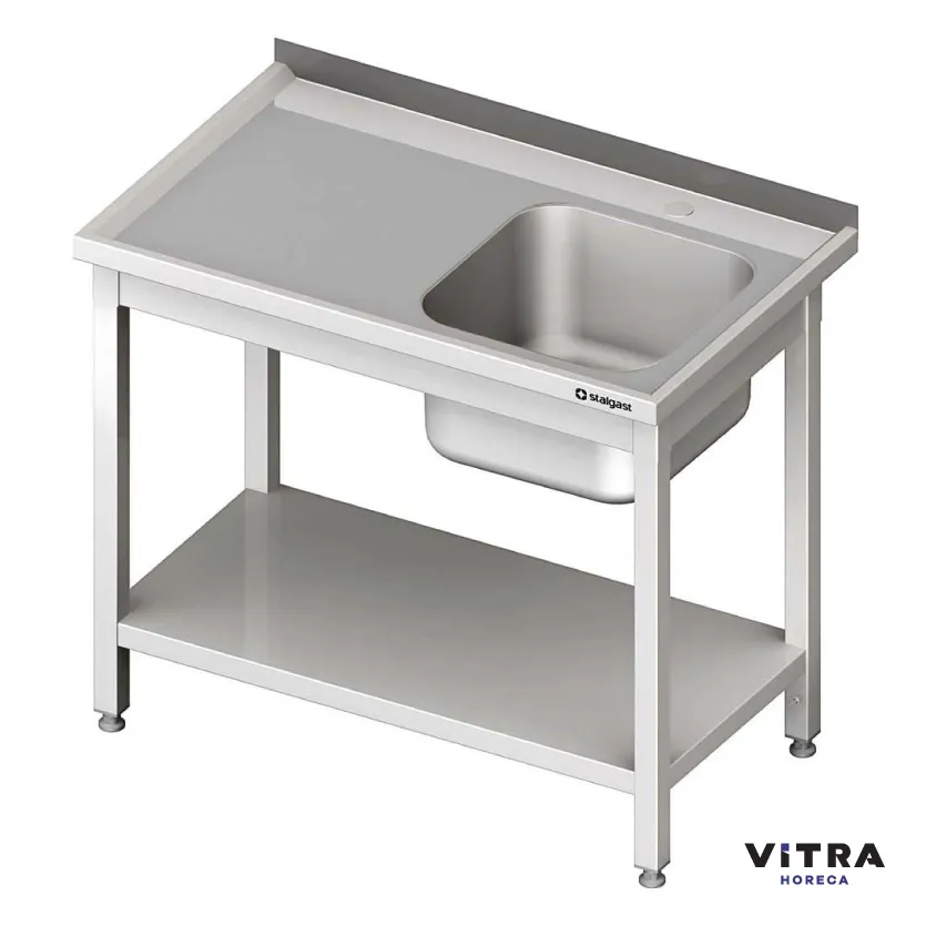 Masa din inox cu lavoar (de dreapta) si o polita, 1000x600x850mm