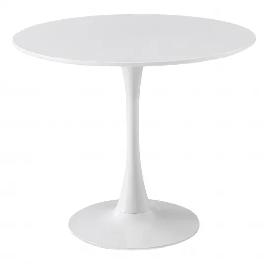 Masa dining/bucatarie Kring Swan, rotunda, cu piedestal, blat MDF / baza metal, 60x73 cm, Alb