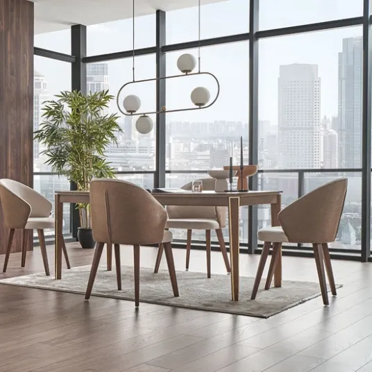 Dimensiuni exterioare: Lungime: 200 cm Latime: 100 cm Inaltime: 75 cm Articol: 3200386275. Colectia: Likya Culoare: Nuc / Gold Material: Pal Cu acest mobilier extraordinar veti petrece momente speciale in confortul casei dumneavoatra. Mobilierul din colectia Likya combina armonios designul modern cu utilitatea. Forma interesanta in combinatie cu liniile geometrice vor crea o atmosfera relaxanta. Masa Likya se integreaza perfect in sufrageria dumneavoastra si creeaza un puternic efect vizual. Detalii tehnice: Produsul este realizat din pal laminat. Respecta toate standardele de calitate ale UE. Articol: 3200386275