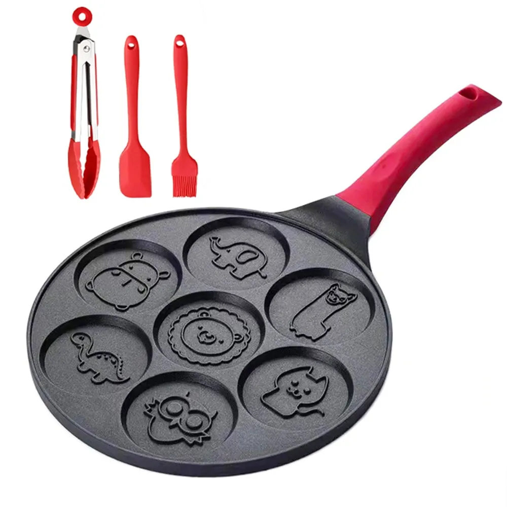 Masina de facut clatite pentru copii, aparat de vafe pentru mic dejun, mini aragaz de oua, forme pentru clatite cu model de animale, antiaderenta, cu spatula de silicon, cleste, perie de ulei, numai pentru aragaz, WALALLA, rosu