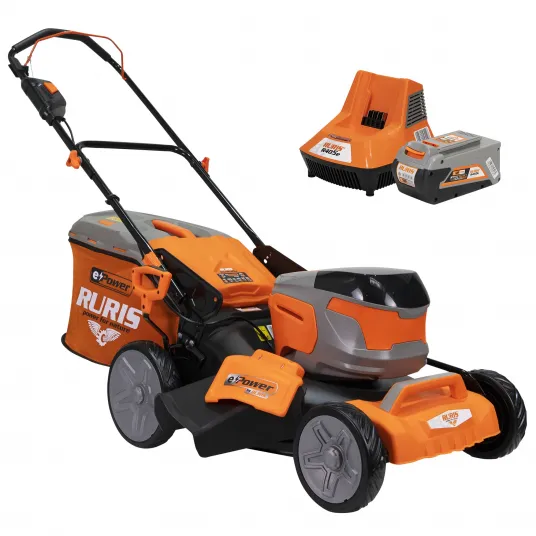 Masina de tuns gazon/iarba pe acumulator Ruris RXI4645e, 40 V 5.0 Ah, latime taiere 46 cm, inaltime taiere 25 - 80 mm, sac colector 50 L, motor fara perii, contine: acumulator 40 V 5.0 Ah + incarcator
