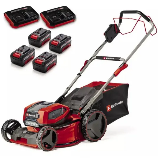 Masina de tuns gazonul pe acumulator Einhell Professional GP-CM 36/47 S Li BL Kit Power X-Change 36 V, latime taiere 47 cm, pana la 700 m², fara perii, colector de iarba de 65 L, autopropulsie , 4 acumulatori 4 Ah, incarcator Twincharger