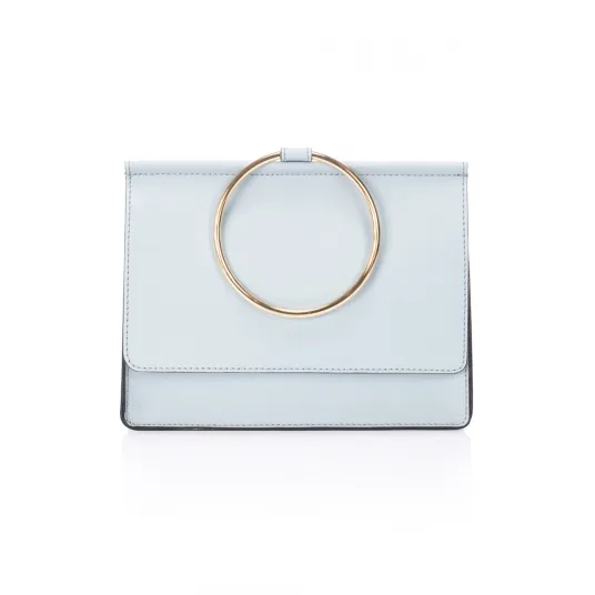Massimo Castelli, Geanta crossbody din piele cu bareta din lant, Albastru deschis