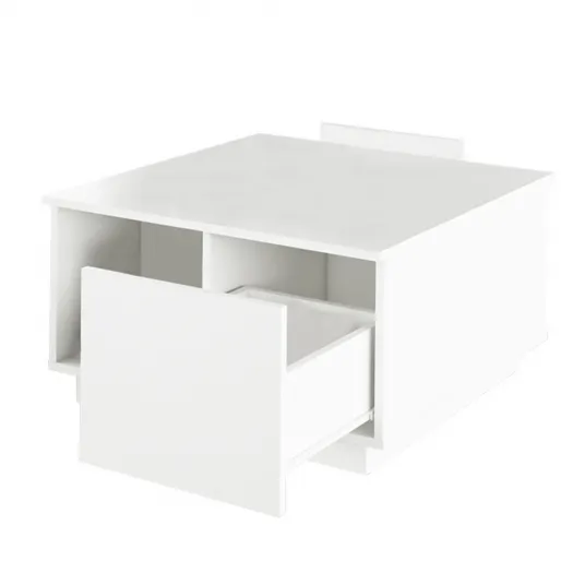 Masuta de cafea DALAN, Material: PAL melaminat Finisaj: alb Dimensiuni (lxhxA): 74x40x74 cm Grosimea materialului la corp: 16 mm Spatiu de depozitare deschis. Cu sertar. Produs slovac de calitate. Livrat nemontat.